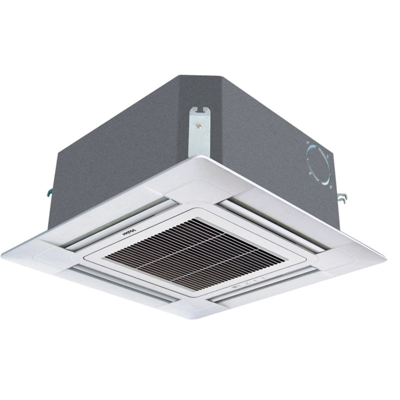 A cassette air conditioner is a type of split-system air conditioner that is designed to be installed on the ceiling. It is a popular choice for commercial spaces, offices, and even residential settings where ceiling-mounted cooling is desired.